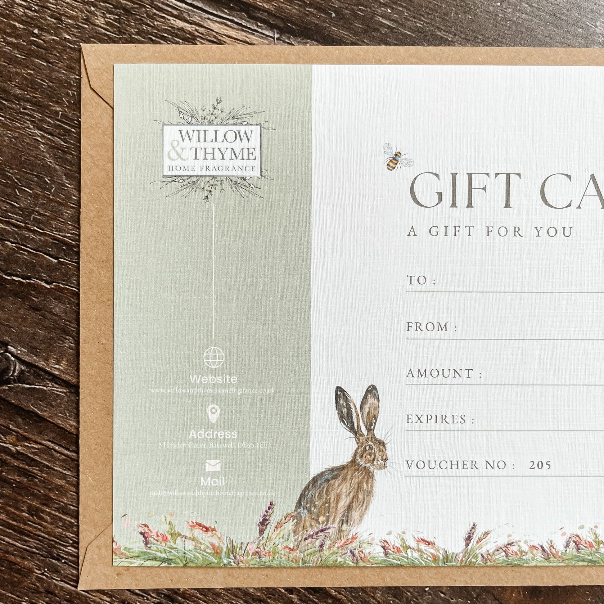 It's not always easy to choose the right gift, why not make things easier and give the gift of our Willow & Thyme Home Fragrance Gift Card!