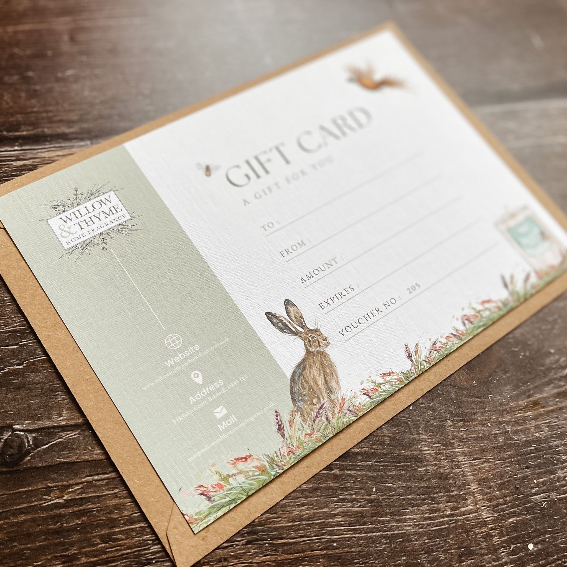 It's not always easy to choose the right gift, why not make things easier and give the gift of our Willow & Thyme Home Fragrance Gift Card!