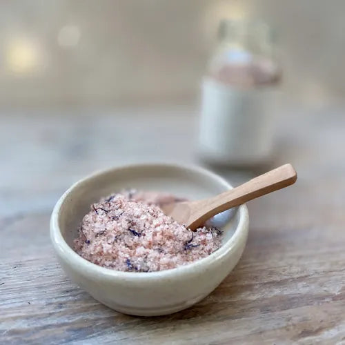 Embark on an indulgent sensory journey with our mineral bath soak. Pink Himalayan, Dead Sea and Epsom Salts infused with rosemary, sweet orange, eucalyptus & lavender essential oils, blended with coconut milk powder and cornflower petals bring you a serene experience for your mind and body. Take a deep breath, soak in the invigorating aromas and allow the mineral-rich salts to cleanse your skin and ease muscle tension, while you drift into a state of peace and tranquility.