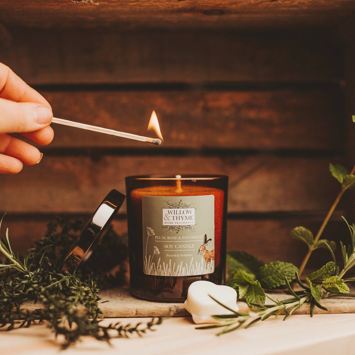 Bring warmth, comfort, and a touch of the Peak District into your home with our Willow & Thyme Soy candles. Lovingly hand-poured in small batches at our Bakewell workshop, each melt is crafted using 100% natural soy wax for a clean, long-lasting fragrance. Each candle comes with a metal lid to help keep your candle dust free and to hold in that amazing smell.