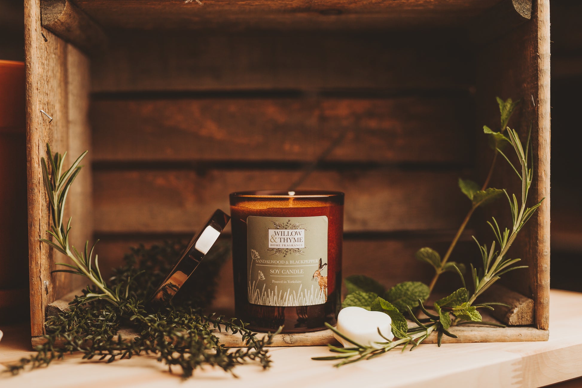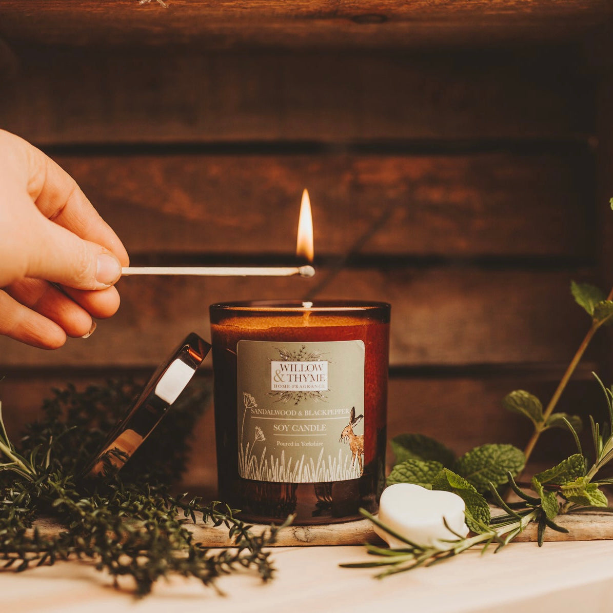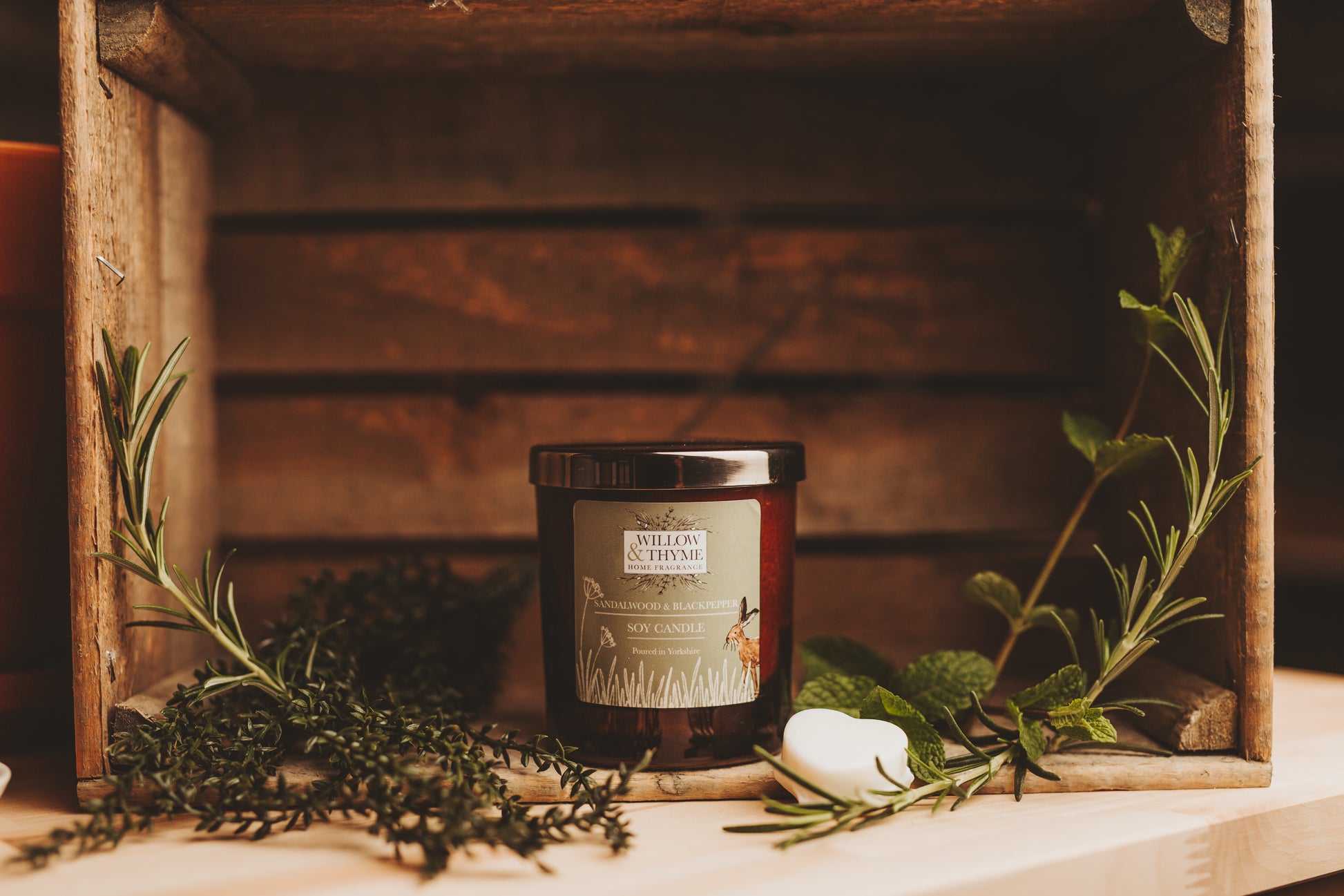 Bring warmth, comfort, and a touch of the Peak District into your home with our Willow & Thyme Soy candles. Lovingly hand-poured in small batches at our Bakewell workshop, each melt is crafted using 100% natural soy wax for a clean, long-lasting fragrance. Each candle comes with a metal lid to help keep your candle dust free and to hold in that amazing smell.
