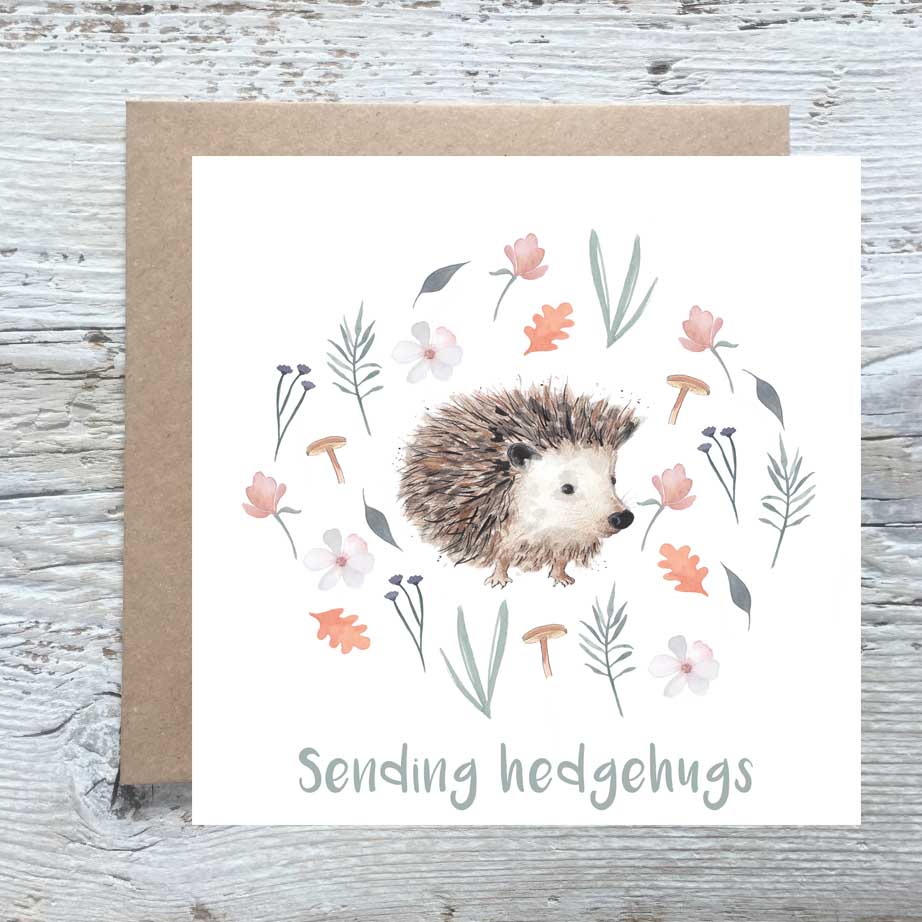 Sending hedgehugs’ 15cm x 15cm greeting card